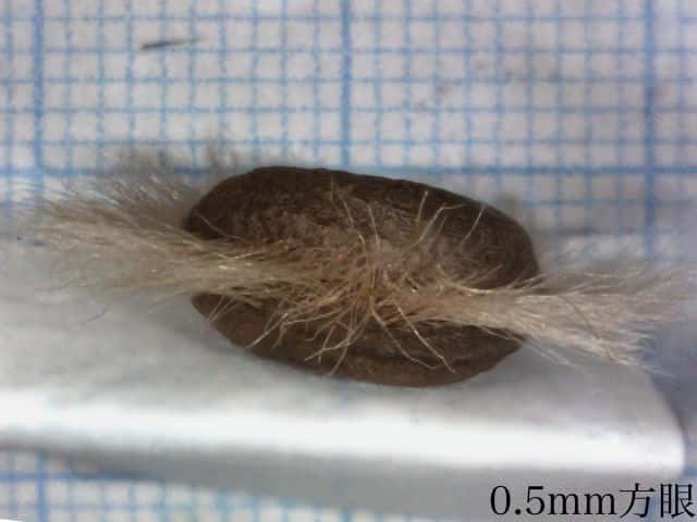 | ▼種子の背面に長毛がある。 | ▼種子の腹面。 | ▼背面の毛は長さ約3mm。 |