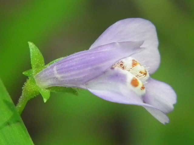| ▼2014年5月8日 東長江 | ▼上唇は上を向いて、深く切れ込む。 | ▼花は萼を含めて長さ約1.5cm。 |