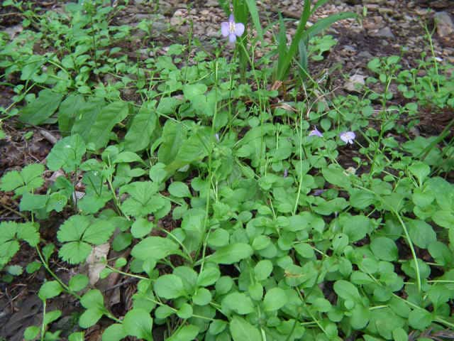 | ▼匍匐枝をだす。 | ▼根生葉(上)長さ約3.5cm、茎葉(下)2cm。 | |