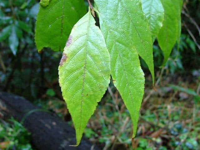 | ▼果序柄が葉腋のすぐ上からでている。 | ▼鋸歯が下部まである。 | |