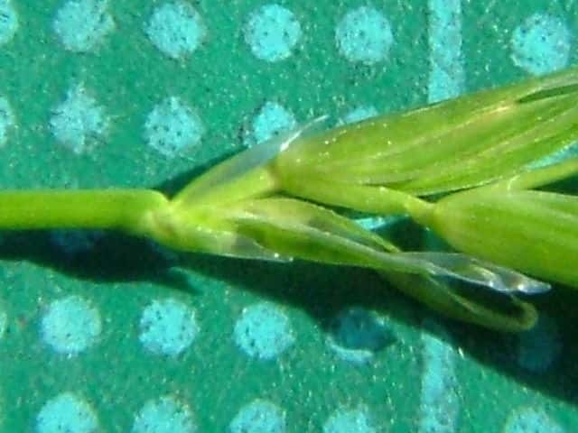 | ▼小穂の基部に長短の苞穎がある。 | ▼小花は長さ約9mm。 | ▼小花を開いた様子。 |