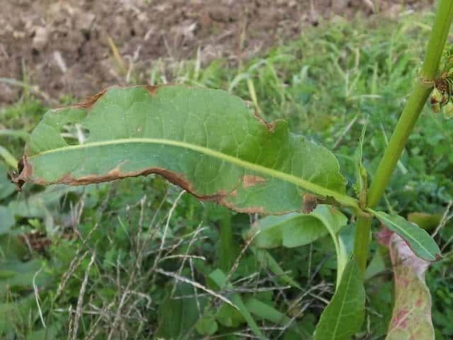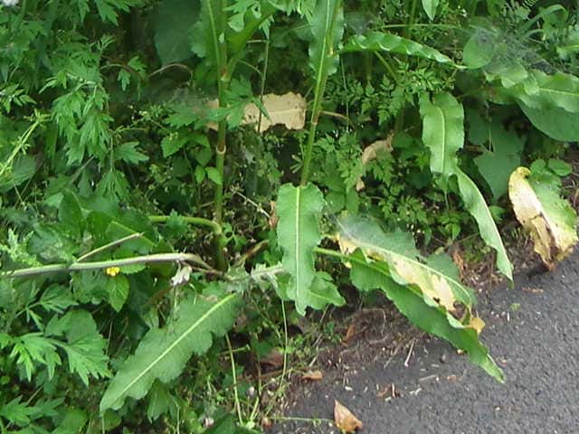 | ▼果実の稜に狭い翼がある。 | ▼茎葉には短い葉柄がある。 | |