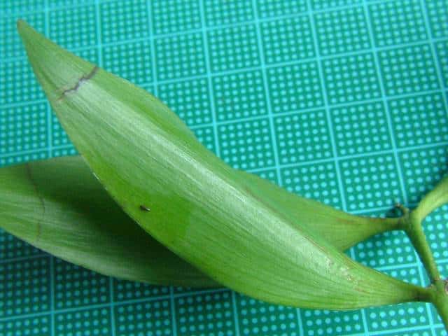 | ▼葉は長さ約7cm。 | ▼裏面は淡緑色。 | |