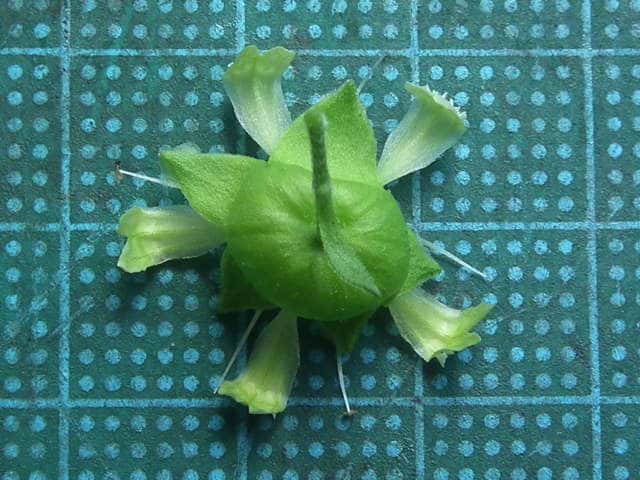 | ▼花弁に1対の鱗片がある。 | ▼花は長さ約1.5cm。 | ▼花は直径約2cm。 |
