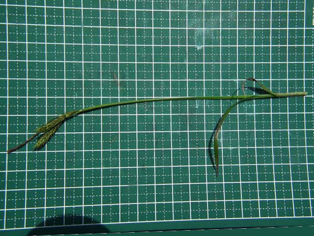 | ▼頂小穂は雄性、側小穂は雌性。 | ▼雌小穂は長さ約2cm。 | ▼果胞は細く、長い嘴がある。 |