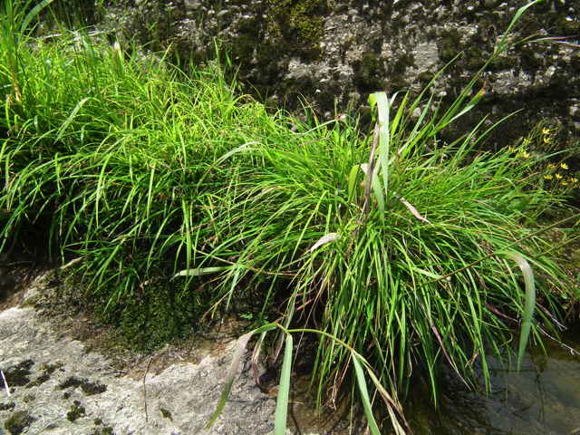 | 多年草 北海道〜九州のシイ・カシ帯〜ブナ帯の渓畔に生える。叢生し短い匐枝を生ずる。基部の鞘は葉身がなく、淡色。葉は幅2.5〜3.5mm。有花茎は高さ20〜40cm、平滑。苞は無鞘、葉身は短い。頂小穂は雄性、線形で長さ1〜2cm。側小穂は雌性で2〜6個、やや接近してつき、長さ1.5〜4cm、幅5〜8mm、先が垂れ下がる。雌鱗片は紫褐色を帯び、果胞の1/2〜1/3長。果胞はやや扁平な3稜形、長さ4〜5mm。果実は果胞にゆるく包まれ、倒卵形で3稜があり、長さ約1.5mm。柱頭は3岐。果期は4〜6月。(日本のスゲ) 学名は、Carex curvicollis カヤツリグサ科スゲ属クロボスゲ節 |
