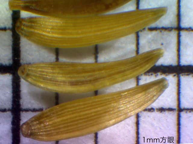 | ▼萼をはずす。冠毛はない。 | v冠毛のない果実。 | ▼果実は長さ約4mm。 |