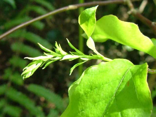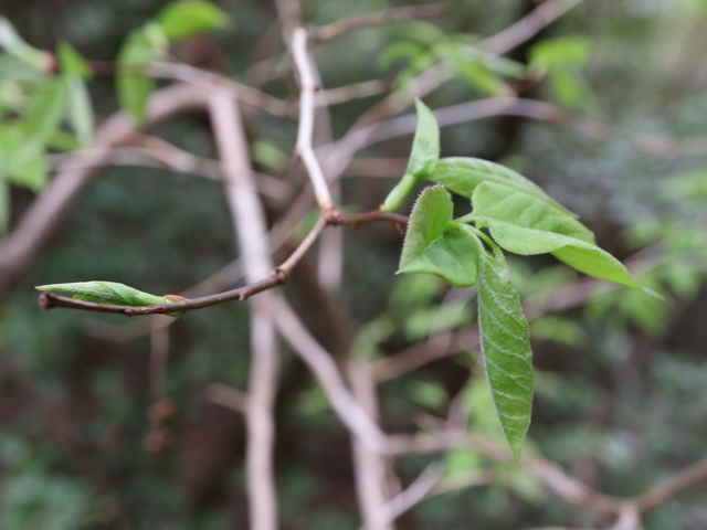 | 落葉低木〜小高木 東北地方南部以南〜九州の丘陵〜山地の乾燥した尾根や斜面に生える。高さ2〜7m、直径7〜25cmになる。樹皮は灰黒褐色または褐色。縦に裂け目が入り、薄くはがれる。成長すると幹がねじれるのが特徴。若い枝は黄緑色または赤褐色。光沢があって美しい。葉は互生。葉身は長さ5〜10cm、幅2〜6cmの広卵形または卵状楕円形。先はとがり、基部はややハート形。ふちは全縁。両面に伏毛がまばらに生え、裏面の主脈から葉柄の上部に白色の毛が密生する。葉柄は長さ5〜10mm。前年枝の葉腋から長さ4〜6cmの総状花序をだし、白い色を花を下向きに多数つける。ときに花冠の先が淡紅色を帯びるものもある。花冠は長さ8〜10mmの壷型で、浅く5裂し、外面には細かい毛が散生する。雄しべは10個。子房は有毛。萼は5深裂し、萼片の先はとがる。果実はさく果。長さ3〜4mmのやや扁平な球形で、5個の筋があり、上向きにつく。9〜10月に熟すと筋の部分が裂けて種子を出す。種子は両端が尖った紡錘形、長さは1mmほど。花期は5〜7月。 冬芽の仮頂芽は長さ5〜7mmの長卵形。芽鱗は紅色を帯び、2個が向き合う。側芽は小さい。葉痕は半円形、維管束痕は1個。(樹に咲く花) 学名は、Lyonia ovalifolia var. elliptica ツツジ科ネジキ属 |