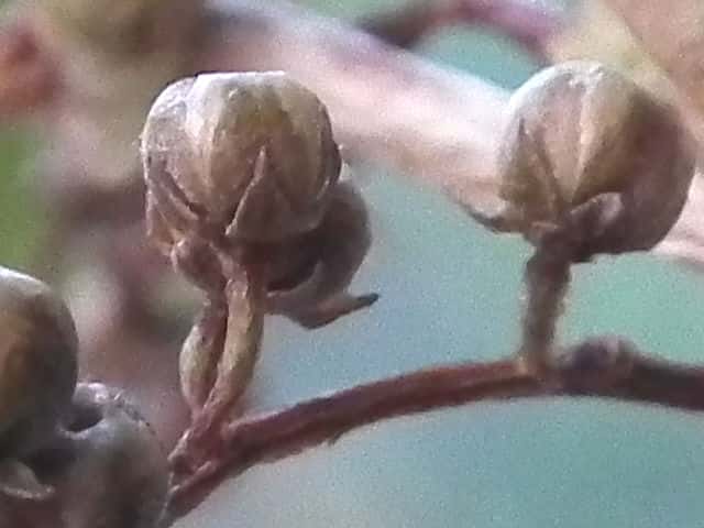 | ▼果実は長さ約3.5mm。 | ▼果実は5裂する。 | ▼5裂した果実は直径約4.5mm。 |