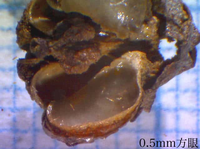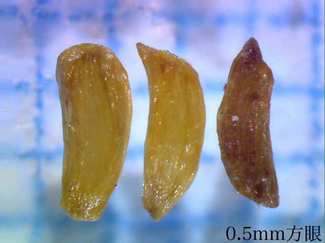 | ▼種子の出てしまった果実内部。 | ▼種子は長さ約1.2mm。 | |