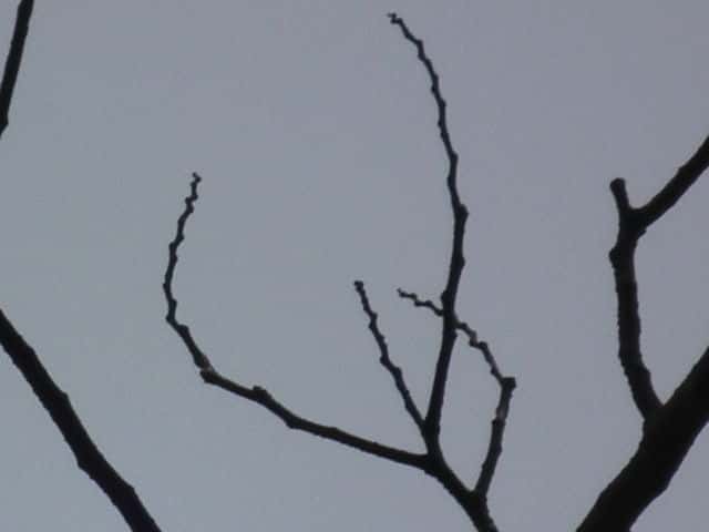 | ▼長さは7〜8mm。 | ▼冬芽は葉痕の中にある。 | ▼枝がジグザグになる。 |