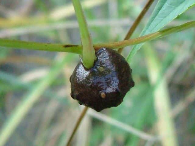 | ▼2012年9月11日 蕾とムカゴ 玉湯 | ▼ムカゴには突起があり、直径約1.2mm。 | |