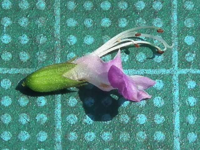 | ▼下唇は大きく、上唇は2深裂する。 | ▼花後の萼。 | ▼萼は長さ約5mm。 |