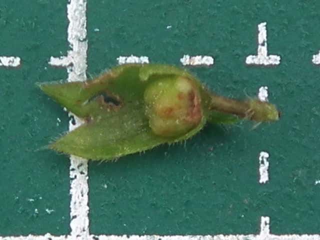 | ▼花は長さ約1cm。 | ▼萼には短毛がある。 | |