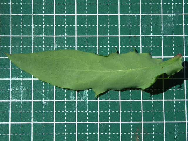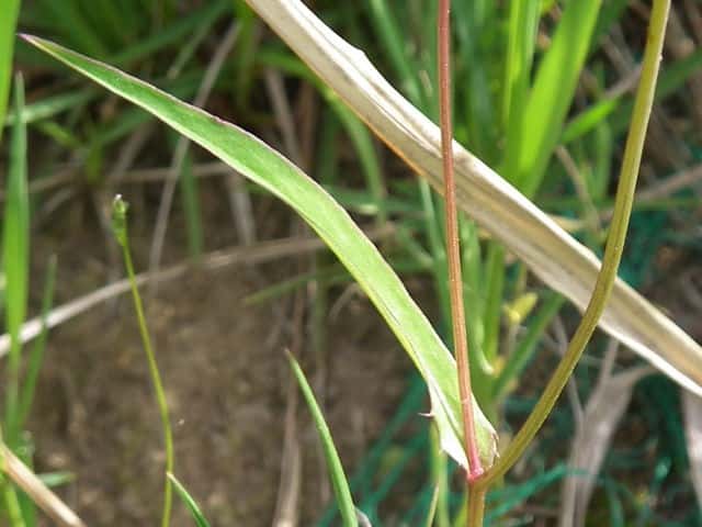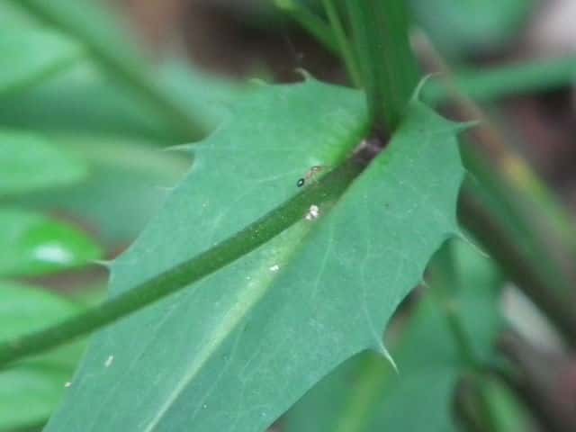 | ▼茎葉の基部には刺状の鋸歯がある。 | ▼下部の葉は長さ約8cm。 | |
