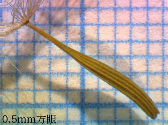 | ▼冠毛は長さ約5mm。 | ▼果実は長さ約5mm。 | |