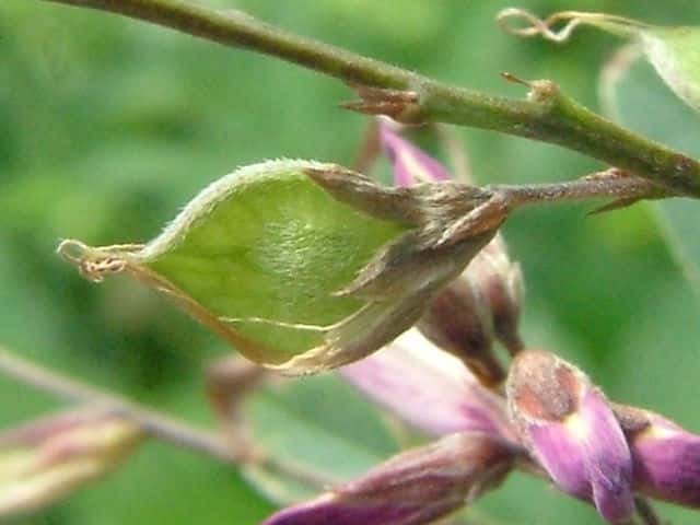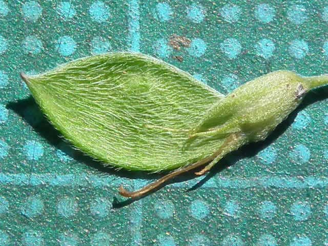 | ▼果実 | ▼小葉の先端はとがる。 | ▼葉の表面は伏毛が密生する。 |