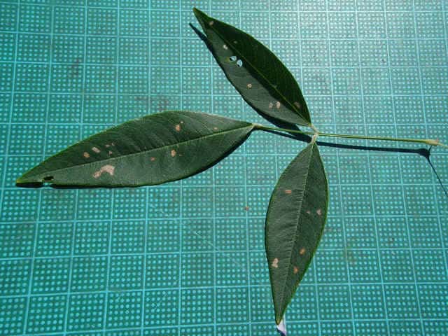 | ▼枝先に小葉の先が丸い葉もある。 | ▼小葉の先が尖るものが多い。 | |