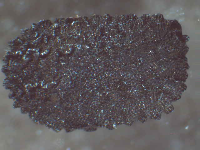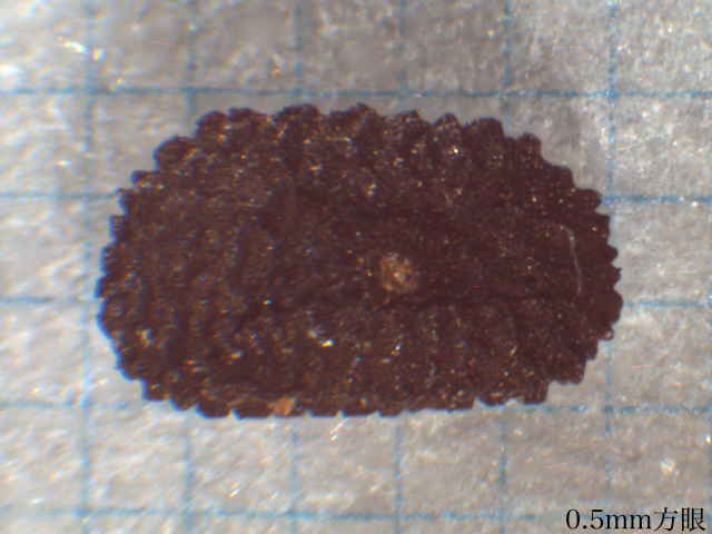 | ▼2019年10月23日 種子 植栽 玉湯 | ▼種子の背面、長さ約2.5mm。 | ▼畝状の隆起がある。 |