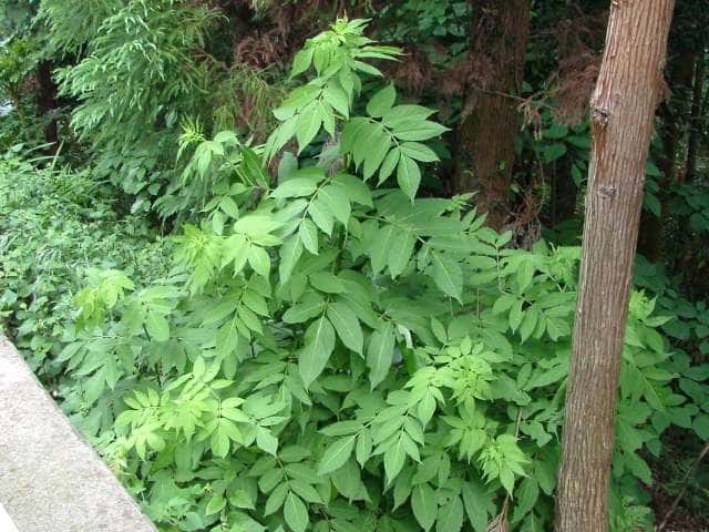 | 落葉低木〜小高木 本州〜九州の山野の林縁に生える。高さ6mほどになる。下部からよく分枝し、枝は放物線を描くようにのび、独特な樹形になる。樹皮は黒灰色。厚いコルク質があり、深くひび割れる。枝は褐灰色。若い枝は緑色で、ほとんど無毛。褐色の太い髄がある。葉は対生。奇数羽状複葉で長さ8〜30cm。花のつく枝の葉の小葉は2〜3対、花のつかない枝では3〜6対。小葉は長さ3〜10cm、幅1〜4cmの長楕円形。先は鋭くとがり、基部は円形〜くさび形。ふちには細かい鋸歯がある。葉形や毛の有無などは変異が多い。新枝の先に直径3〜10cmの円錐花序をだし、直径3〜5mmの小さな花を多数つける。花はふつう黄白色ときに淡紫色を帯びる。5深裂してそり返る。雌しべの柱頭は暗赤色で3裂する。雌しべの柱頭は暗赤色で3裂する。果実は核果。長さ3〜5mmの卵球形で、6〜8月に暗赤色に熟す。核は長さ2mmほど。花期は4〜5月。 冬芽は、長さ6〜10mmの長卵形〜卵形。混芽はほぼ球形。芽鱗は4〜6対ある。葉痕はやや半月形。維管束痕は3〜5個。(樹に咲く花) 学名は、Sambucus racemosa subsp. sieboldiana var. sieboldiana ガマズミ科ニワトコ属 似たものに亜種エゾニワトコ(Sambucus racemosa subsp. kamtschatica)、変種オオニワトコ(Sambucus racemosa subsp. sieboldiana var. major)などがある。 「ニワトコの微細構造に関する研究」に、「ニワトコには、それぞれ形状や分布の異なる3種類の花外蜜腺(小葉蜜腺、茎蜜腺、葉軸蜜腺)がある。」と記載がある。 |