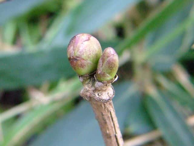 | ▼2015年10月24日 冬芽 西忌部 | ▼球形の冬芽は混芽。 | |