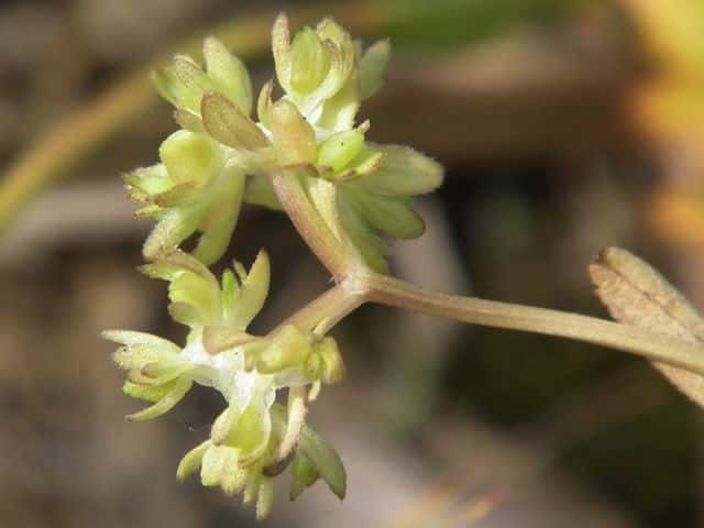 | ▼花は直径約2mm。花柄の基部に苞葉がつく。 | ▼柱頭は3裂するとあるが?。 | ▼若い果実、長さ約2mm。 |