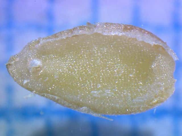 | 種子の背面。 | 種子の腹面。 | 種子の表面に細かな粒状突起が密生する。 |