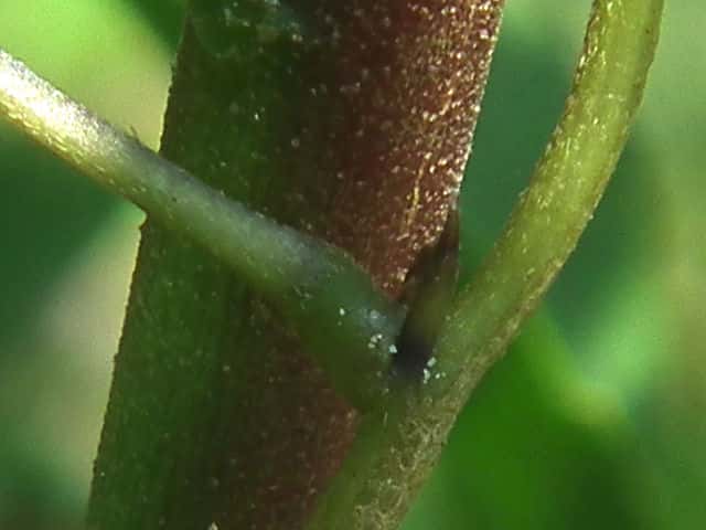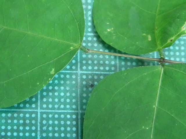 | ▼裏面は白っぽく、毛が散生する。 | ▼葉柄基部に托葉がある。 | |