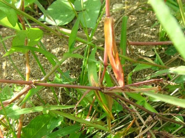 | ▼下部の茎の節からは発根する。 | ||