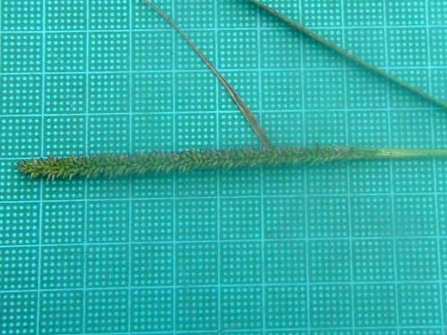 | 1年草 本州〜沖縄の湿潤な所に生育する。茎は高さ30〜60cm、直立・叢生。葉は長さ15〜30cm、幅3.5〜5mm、無毛、縁はざらつく。葉舌は厚く長さ0.5mm。葉鞘は無毛。花序は穂状、長さ6〜12cm、径5〜6mm。小穂は楕円形、淡紫色、上部にはまばらな毛があり、長さ2.8〜3mm、短い小梗をつけて花軸に密集し、2小花からなるが、第1小花は護穎だけとなる。第1包穎は三角状披針形、長さ1.5〜1.8mm。第2苞穎は広楕円形、小穂と同長、9脈。第1小花の護穎は第2包穎とほぼ同長。第2小花の護穎と内穎は革質、乳褐色、ガラス様の光沢がある。果実は乳灰褐色、長さ1mm。花期は8〜9月。(日本イネ科植物図譜) ハイヌメリグサの中で稈が叢生して草丈が高く、30〜60cmで、花序がしばしば暗紫褐色をおび、長さ3〜12cmのものをヌメリグサとして区別することががあるが中間型が多い。(日本の野生植物) 学名は、Sacciolepis spicata var. oryzetorum イネ科ヌメリグサ属 よく似た仲間にハイヌメリグサがある。 |