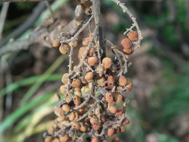 | ▼外果皮には細毛が密生する。長さ約4mm。 | ▼まだリンゴ酸カルシウムがついている果実。 | |