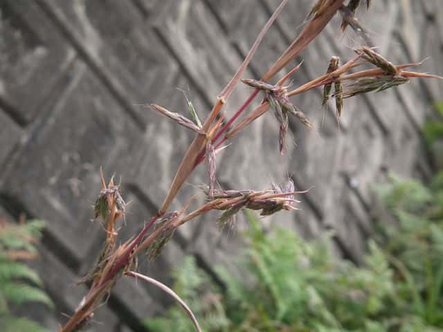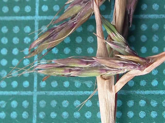 | ▼柄のない小穂と柄のある小穂が対になる。 | ▼葉舌は三角状、長さ3〜5mm。 | |