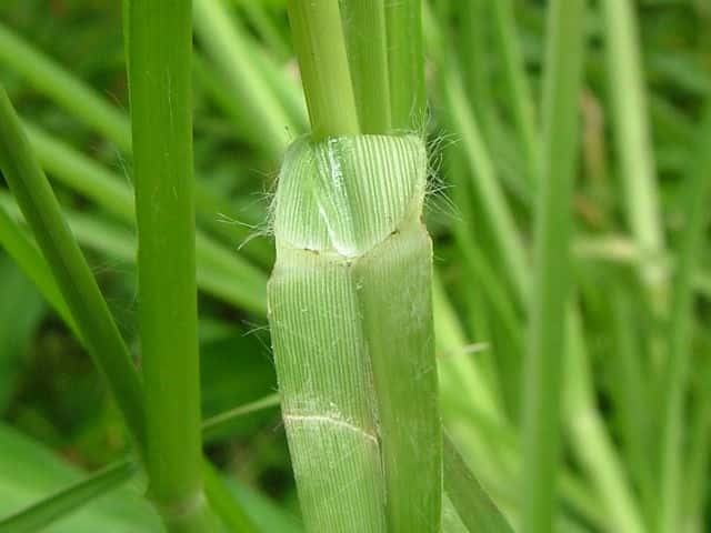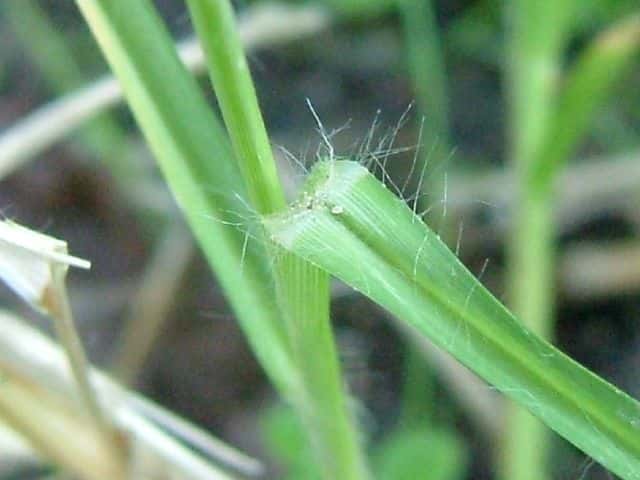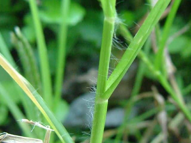 | ▼小花の内穎を広げてみた。 | ▼葉の縁に長い軟毛がある。 | ▼踏まれて斜上している個体。 |