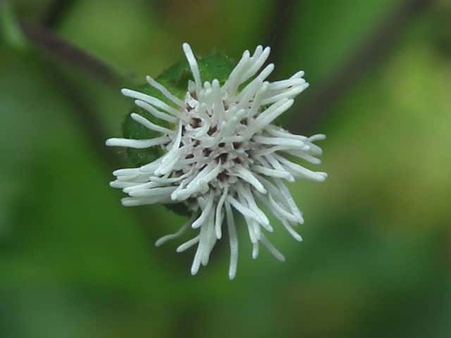 | ▼果実 | ▼総苞片は花のあと反り返る。 | ▼冠毛はこん棒状で、粘液を出す。 |