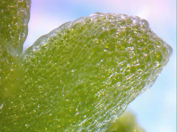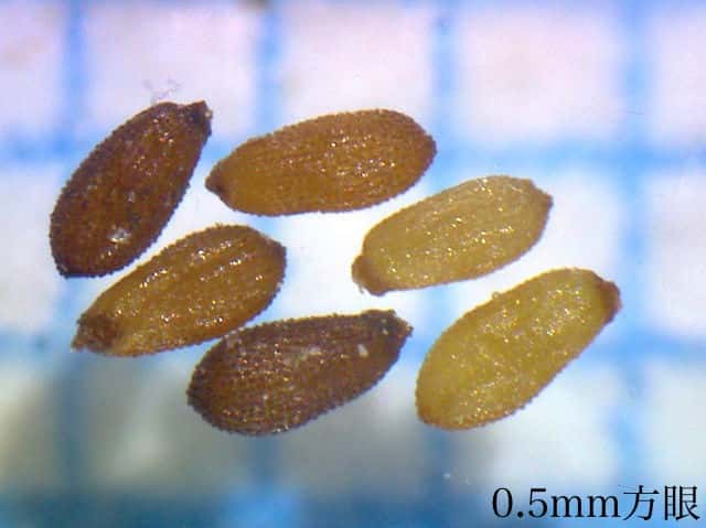 | ▼種子は長さ約0.75mm。 | ▼表面に小さな突起が密生する。 | ▼葉は長さ約5mm。 |