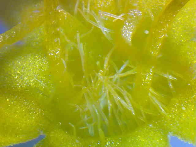 | ▼花筒内部に毛がある。 | ▼内部の毛の拡大。 | ▼花柱や雄しべの花糸にも毛がある。 |