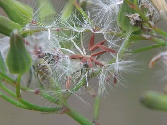 | ▼冠毛は長さ約3mm。 | ▼総苞に包まれた果実。 | |