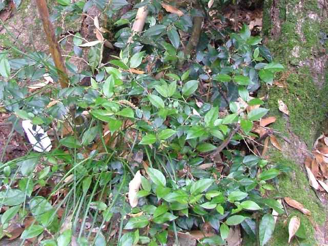 | 常緑低木 関東地方以西〜沖縄の常緑樹林内に生える。高さ50〜100cmになる。枝には曲がった短毛が2〜3年枝まで残る。刺はアリドオシより短く、長さ2〜6mmで、葉の半分以下の長さしかない。葉は対生。大小2形が交互につく。アリドオシよりやや大きく、長さ2〜6cm、幅6〜20mmの卵形。葉柄は長さ1〜3mm。花期は4〜5月。(樹に咲く花) 高さ50〜100cm。とげは長さ2〜10mmと、葉の長さの半分以下。葉身は長さ1〜5cm、幅0.6〜2cm。(日本の野生植物) 学名は、Damnacanthus indicus var. major アカネ科アリドオシ属 (アリドオシ) よく似たアリドオシは葉が7〜20mm、刺が葉と同長か長い。 枝先や葉腋に白色の花を2個ずつつける。花冠は長さ約1cmの漏斗形で、先は4裂し、裂片は長さ約3mm。萼は長さ1〜1.5mm、4裂する。果実は核果。直径5mmの球形、先に尖った萼片が残る。11〜1月に赤く熟す。核は長さ約3mm。花期は4〜5月。(樹に咲く花) |