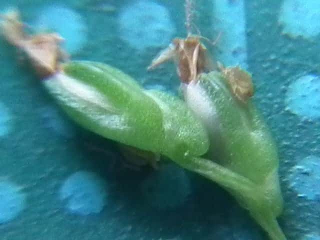 | ▼萼を除いた果実。 | ▼花冠を除いた果実、長さ約4mm。 | ▼取り除いた花冠。 |