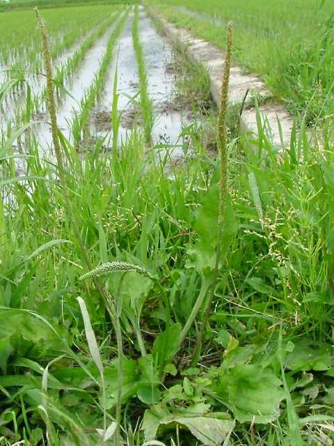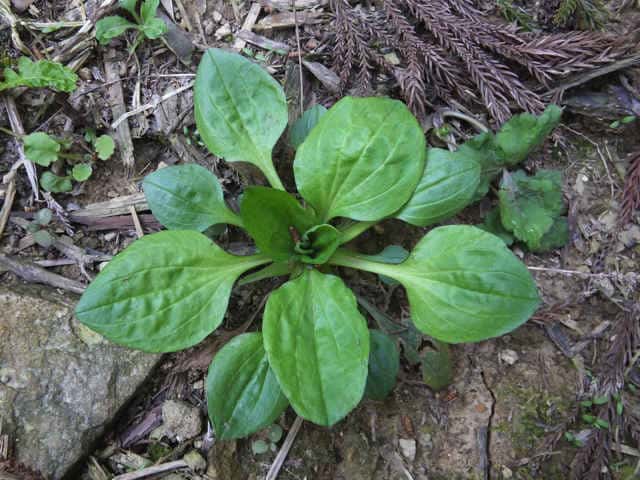 | 多年草 日本全土の日当たりのよい道ばたや荒れ地などにふつうに見られる。踏み固められた道路などにも平気で生える。葉は全て根生し、長さ4〜15cm、幅3〜8cmの卵形または広卵形、まれに楕円形と変化が多い。数本の脈が目立ち、葉面が波打っているものも多い。葉柄は長く、断面は半月形。根生葉の間から高さ10〜20cmの花茎を数本のばし、小さな花を穂状にびっしりとつける。花は4個の萼片と1個の苞に包まれていて、花序の下から上に咲き上がる。雌しべ先熟で、まず萼の間から柱頭が顔をだして受精したあと雄しべ4個がのびでてくる。このころには花冠も萼の上部に出て開出する。萼片は長さ約2mmでふちは白色の膜質。苞は萼片より小さく、先端は赤みを帯びる。果実は熟すと中央部で横に割れる蓋果。上半部は円錐状でややとがり、この部分が帽子のようにとれる。種子は6〜8個。花期は4〜9月。(野に咲く花) 学名は、Plantago asiatica オオバコ科オオバコ属 花茎が長いものにトウオオバコがあり、種子が長さ1〜1.4mmと小さく、10〜20個と多い。また似たものにセイヨウオオバコがあり、果実の横断面に種子が6〜7個あり、種子は8〜16個入る。種子は長さ約1.2mm。 |