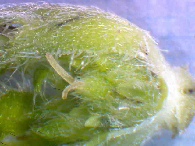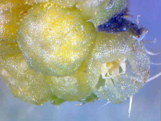 | ▼柱頭が2裂している。 | ▼雌花は柱頭を除いて長さ約3mm。 | |