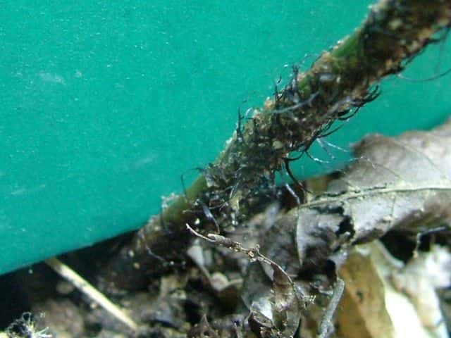 | ▼中軸と羽軸の鱗片。 | ▼新芽。 | ▼葉柄基部には黒褐色の鱗片がつく。 |