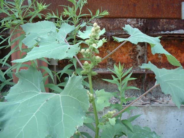 | 1年草 北アメリカ原産。1929年に岡山県ではじめて見つかり、現在では各地に広く帰化している。茎は褐紫色を帯びるものが多く、高さ0.5〜2mになる。葉は長い柄があって互生し、卵形または広卵形で3〜5浅〜中裂する。ふちには不ぞろいの鋸歯があり、両面ともざらつく。雌雄同株。雄頭花は葉腋からでた短い花序につく。花糸は合着して筒をつくり、葯は離生している。雌頭花は雄花序の基部に集まってつく。総苞片が合着して壺形になり、なかに花冠がなく雌しべだけになった雌花が2個入っている。花柱は総苞の外につきでる。総苞は成熟すると肥厚してかたくなる。果苞は1.8〜2.5cmの楕円形で、先端にくちばし状の突起が2個あり、表面には長さ3〜6mmのカギ状の刺が密生する。熟すと褐色になる。花期は8〜10月。(野に咲く花) 学名は、Xanthium occidentale キク科オナモミ属 よく似たイガオナモミは果苞が17〜30mmと大きく、刺がより密生し鱗片毛や腺毛が多い。 |
