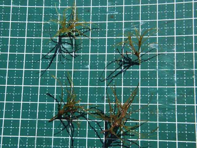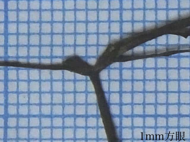 | ▼2015年9月14日 宍道 | ▼葉は長さ約3cm。尖った鋸歯がある。 | ▼葉(乾燥標本) の幅は0.2〜0.3mm。 |