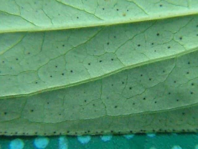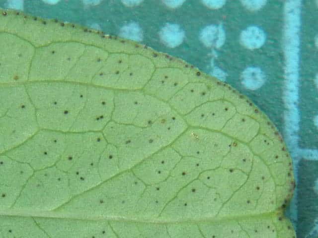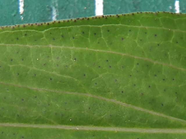 | ▼葉には黒点があり、縁には黒点が並ぶ。 | ||