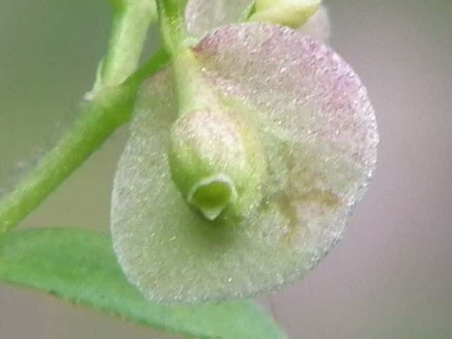 | ▼小苞は直径約6mm。 | ▼翼状の小苞の上に果実が乗っている。 | |