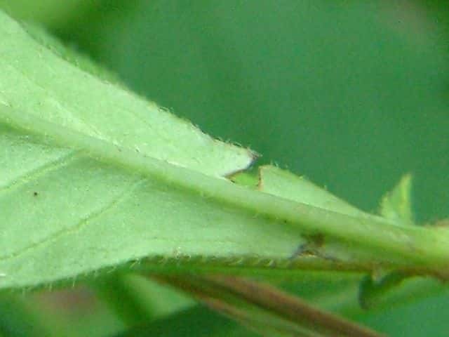 | ▼茎の途中の葉腋から匐枝を出している。 | ||