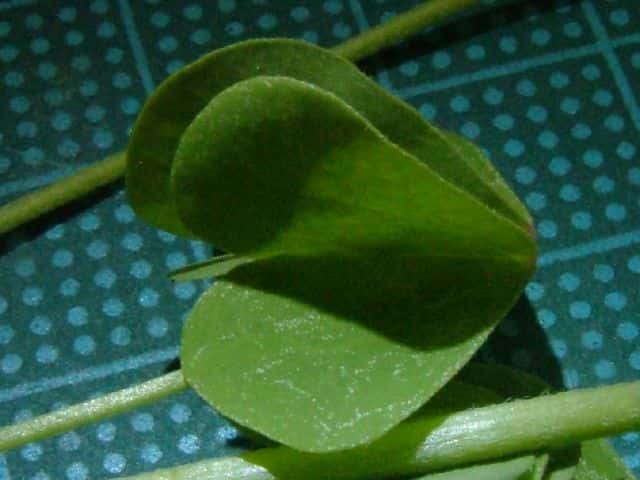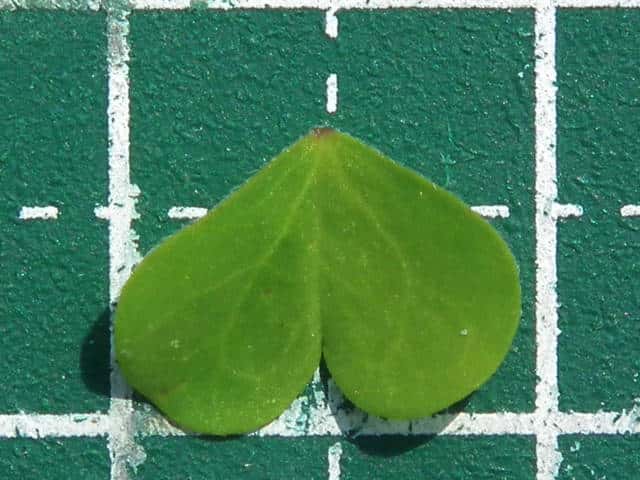 | ▼小葉は長さ約7mm、幅1cm。 | ▼裏面には毛が多い。 | |
