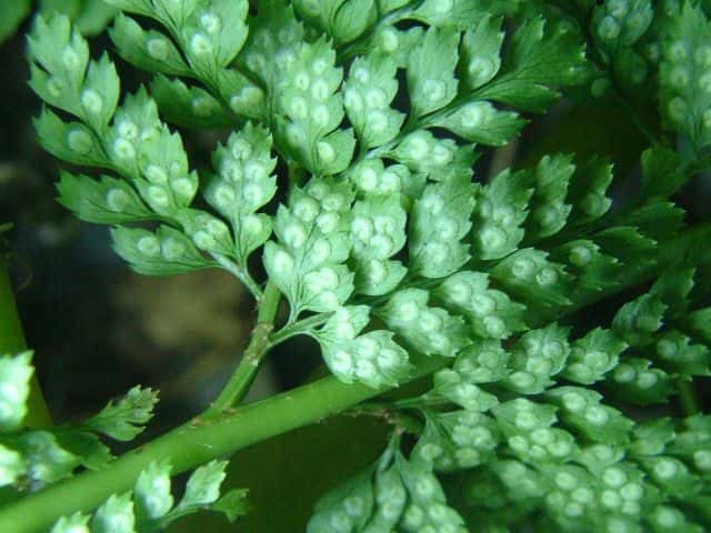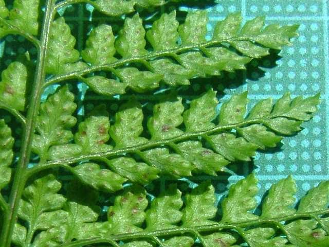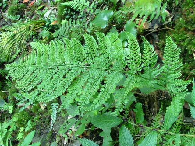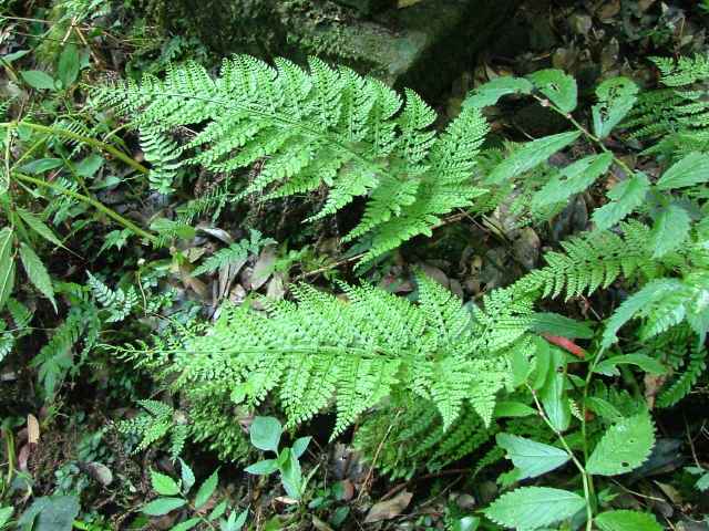 全国の各地の山地の谷間や斜面の湿ったところに生える。高さは60〜150cm。葉は黄緑色から明るい緑色で、3回羽状複葉。葉の両面が同じ色をしている。葉柄下部の鱗片は褐色〜黄褐色で密生する。包膜は大型で円腎形。