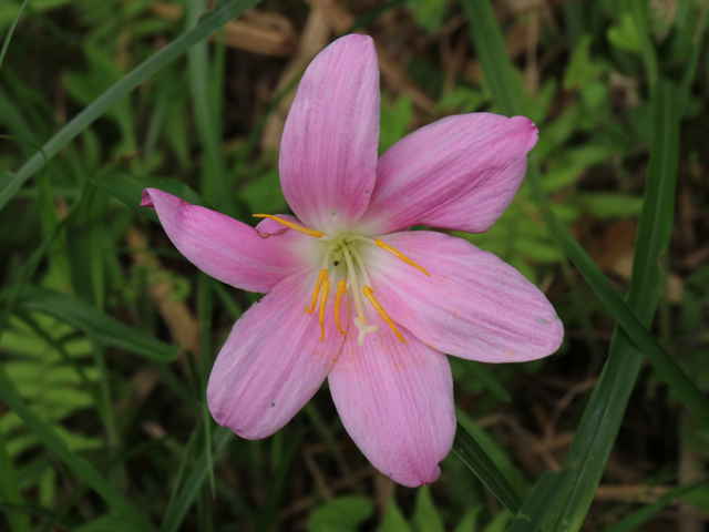 ジャマイカ、グアテマラ、キューバ、メキシコ原産。鱗茎は大きく径3cm前後あり、地表に半分以上出ている。葉は根生し平たい線形。長さが15〜30cm、幅7mm前後、緑色だが基部が紅茶褐色帯びる。茎が直立し花は上を向いて咲く。花は6cm前後、花被は6裂し桃色をしているが濃い桃色から薄い桃色まである。別名ゼフィランサス・カリナタ。花期は6〜10月。